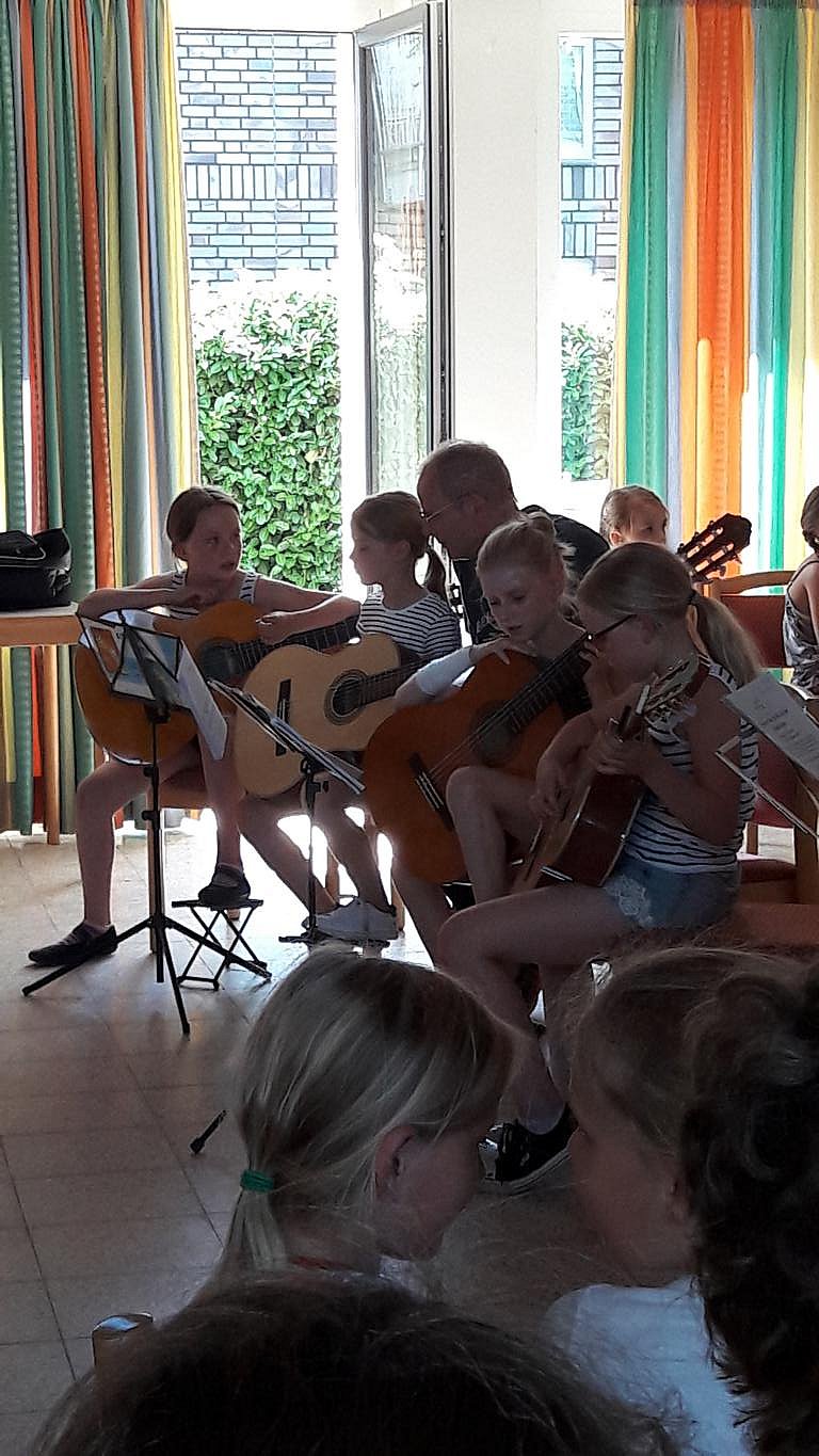 Der Kinderchor und eine Gitarrengruppe musizieren im Altenheim Maria Rast.